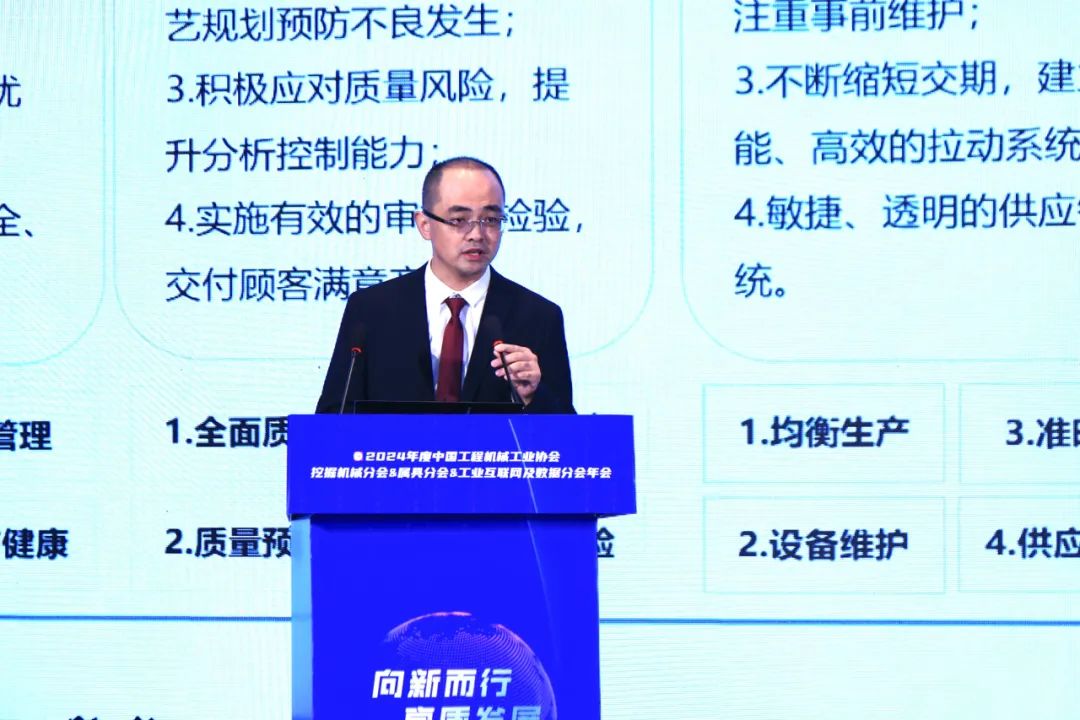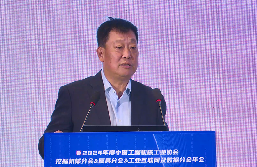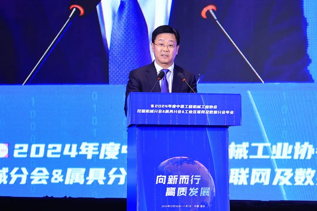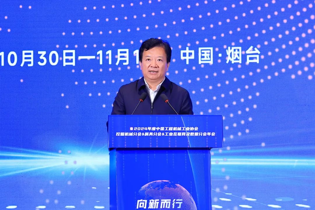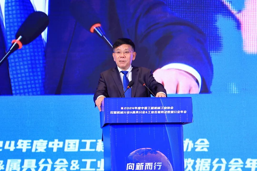 中国工程机械工业协会挖掘机械分会会长黄敏作《向新而行 高质发展》主旨发言
