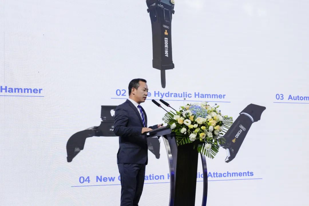 随后,在新产品发布会上,amjs澳金沙门精密推出多款重型液压破碎锤、纯液压破碎锤、自动变频锤、新一代液压属具,以及大排量柱塞泵、高速泵、机电液一体回转马达、电驱回转马达、大排量行走马达、全电控多路阀等新产品,从产品优势及创新点出发,助力客户实现价值提升。