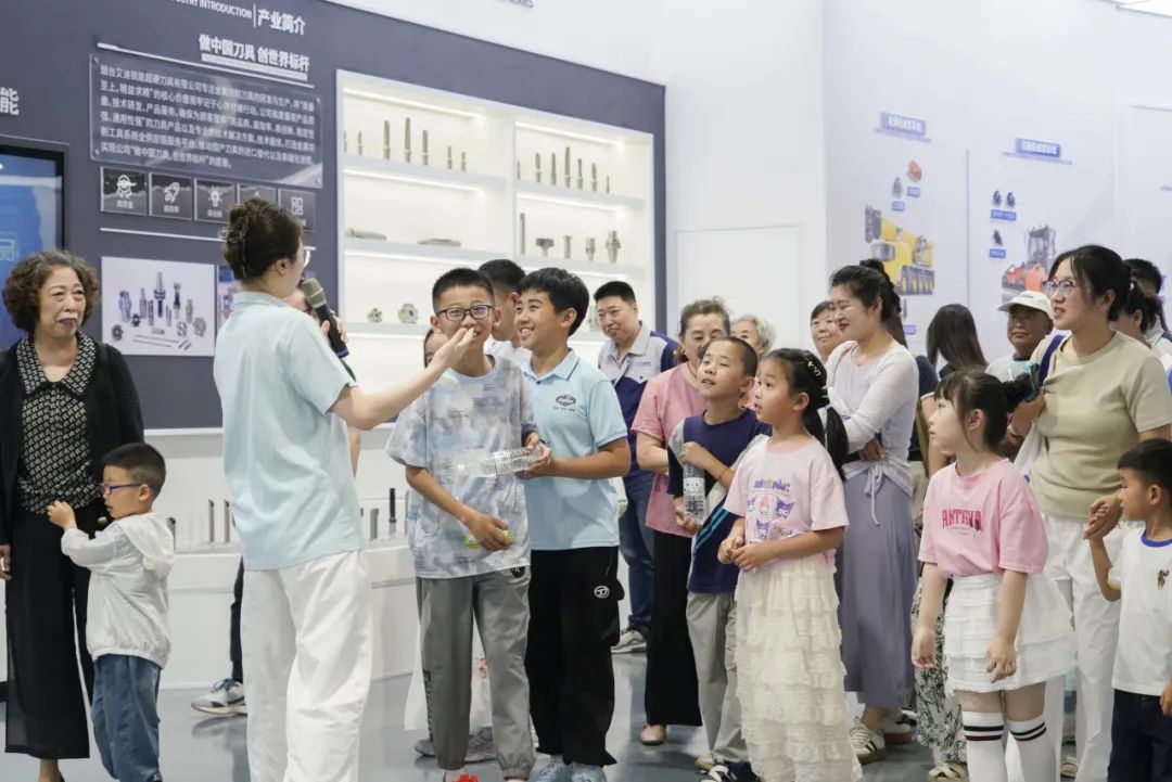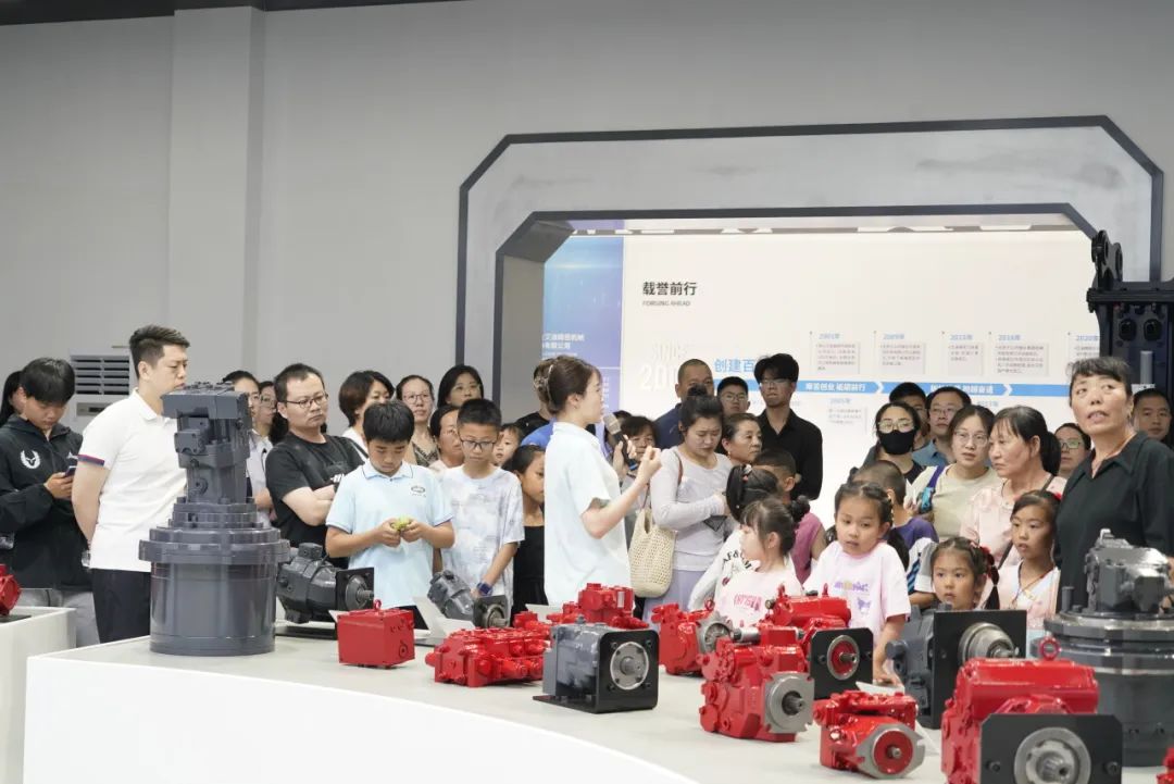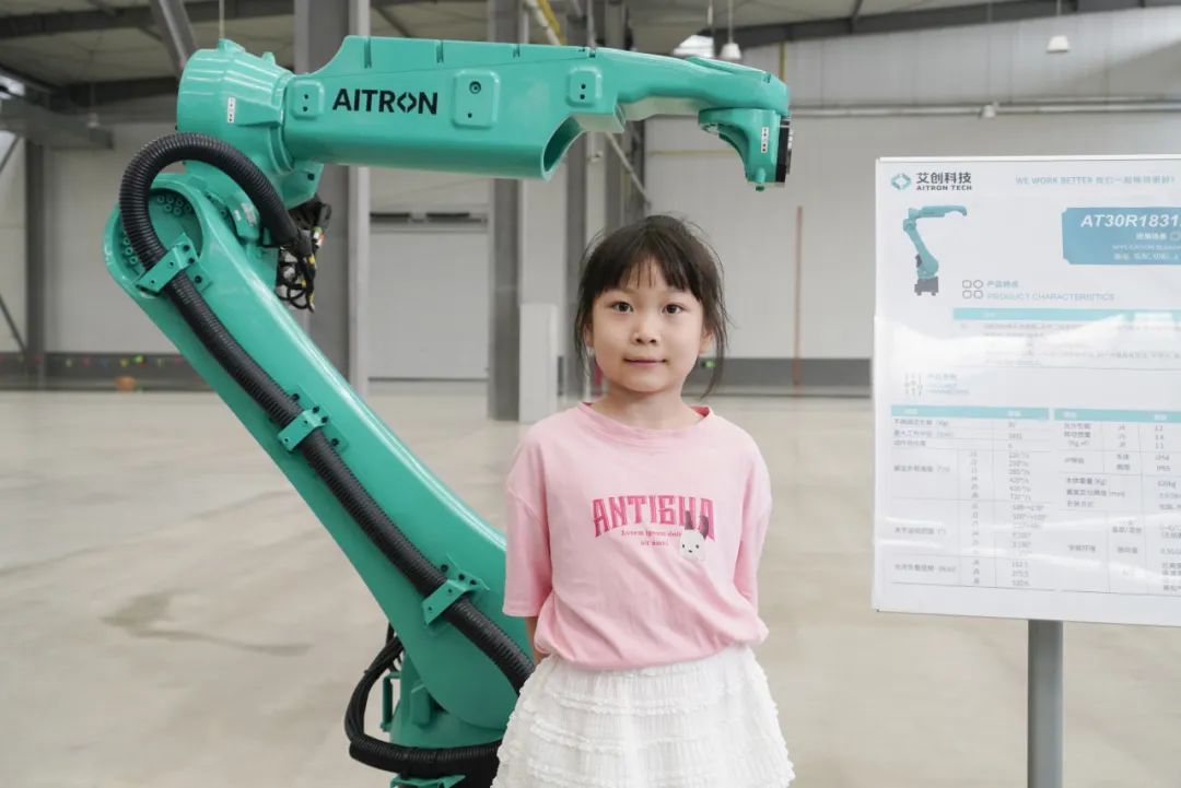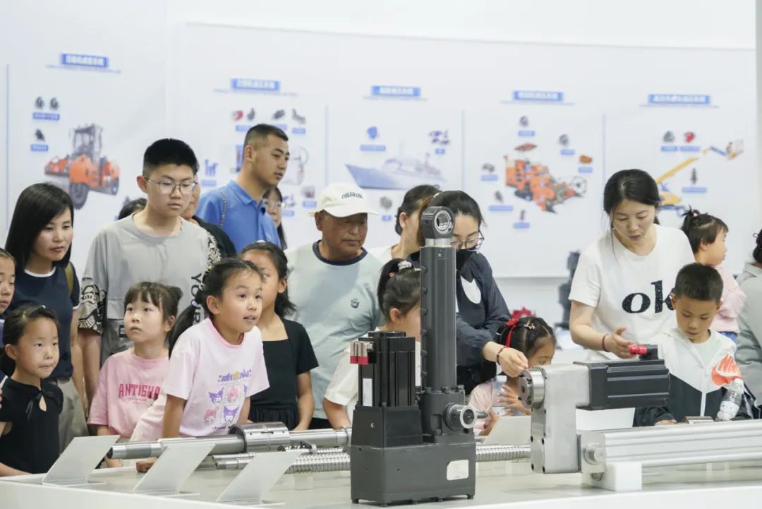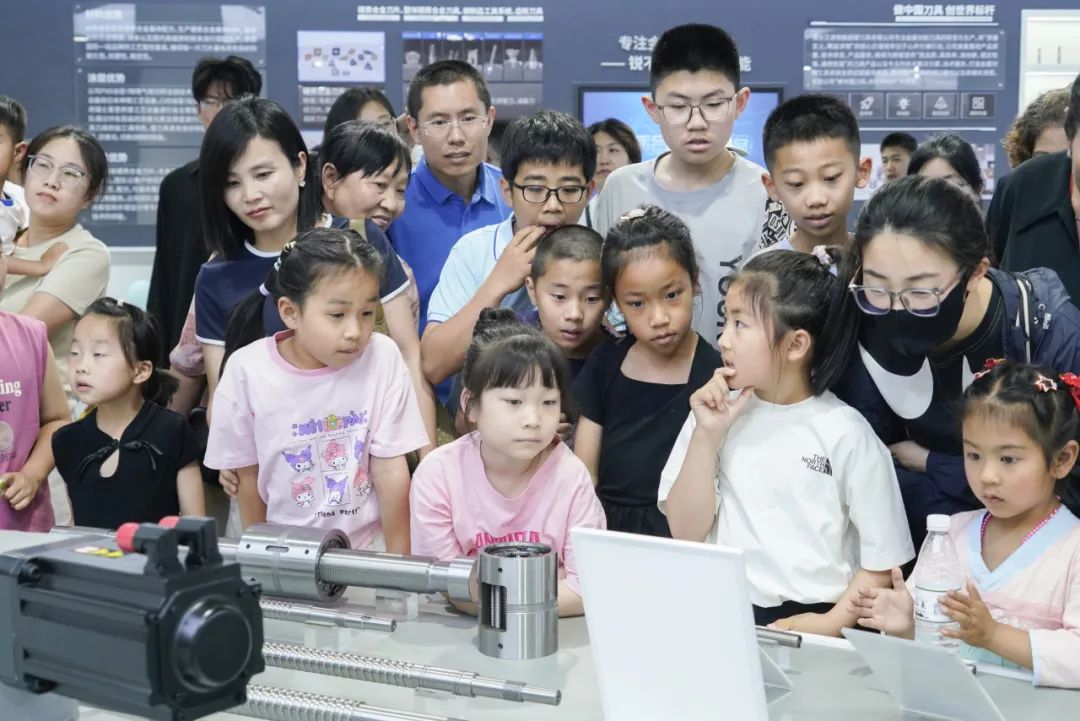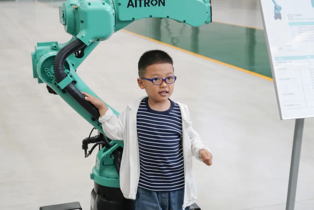 随后,家属们一同乘坐班车前往厂区参观,一场充满科技感的探秘之旅正式开启。在讲解员引领下,家属们依次走进智能化展厅、马达工厂与机器人工厂,近距离感受先进生产设备与精湛工艺。孩子们对自动化生产线充满好奇,不时发出惊叹声。这不仅是一次知识科普,更增进了家属对家人工作的理解与认同。