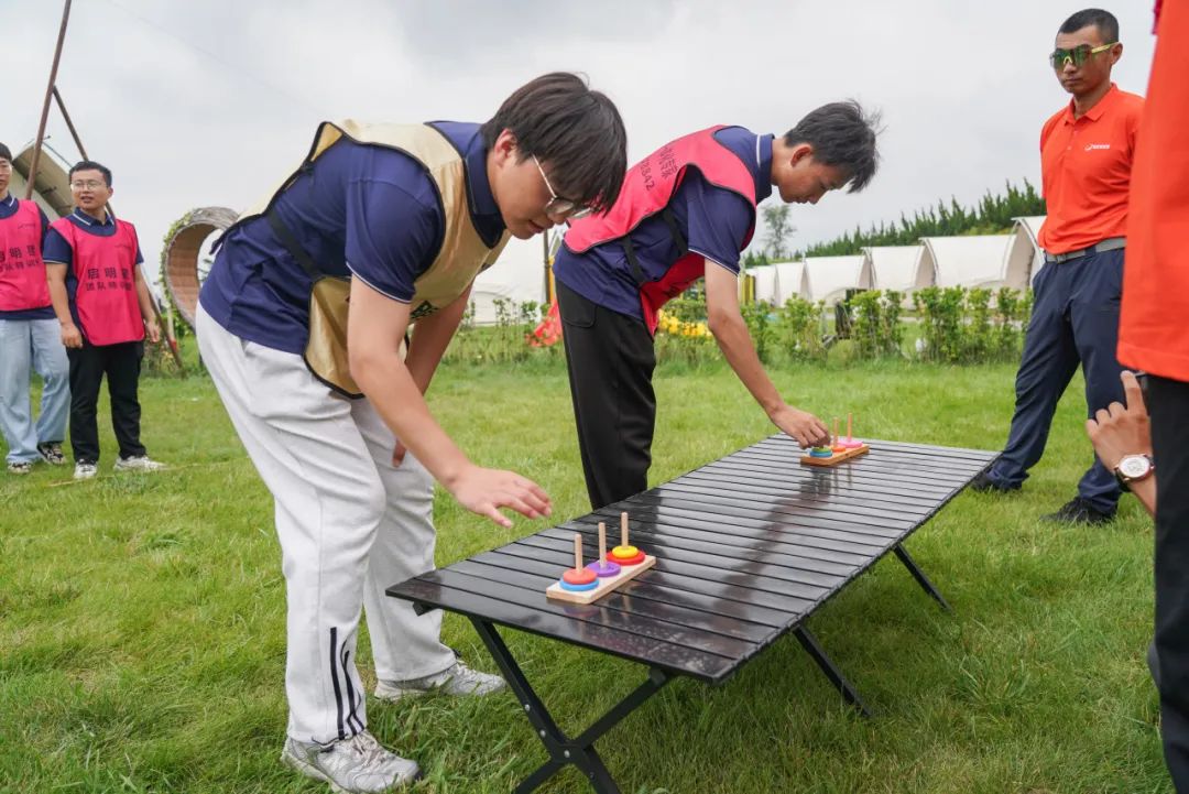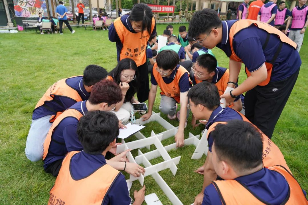 在素质拓展中,应届生们全程投入协作挑战。上午,汉诺塔项目见证了队员们从初期的忙乱逐渐变得有条不紊,随后的搭书架项目则将动手能力与团队协作推向高潮,从信息传递到搭建执行,队员们各司其职、群策群力,共同攻克难题。下午的沙盘模拟让队员们化身决策者,在资源有限的条件下制定战略、参与竞争。面对困境,大家共同分析原因、探寻对策,深刻体会到团队决策的分量。每项活动结束后,学员们的积极总结发言与感悟分享,不仅深化了对团队合作的理解,更拉近了彼此的距离。