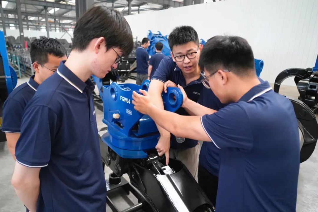 巡厂之旅让理论知识在生产一线落地生根。从奥朗铸造的生产线到液压马达的加工车间,从艾创机器人的测试区到破碎锤的装配车间,学员们近距离观察产品生产全流程。在机器轰鸣中,工程师们讲解每道工序的严谨性,让精益求精的理念具象化。